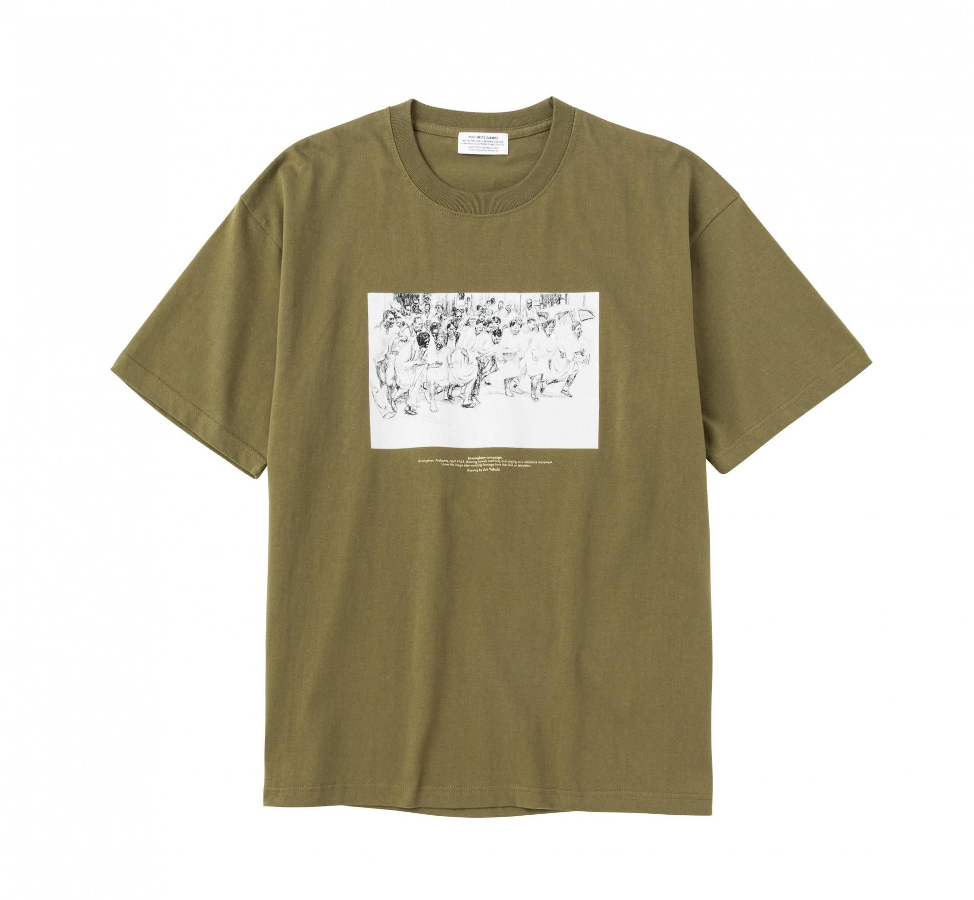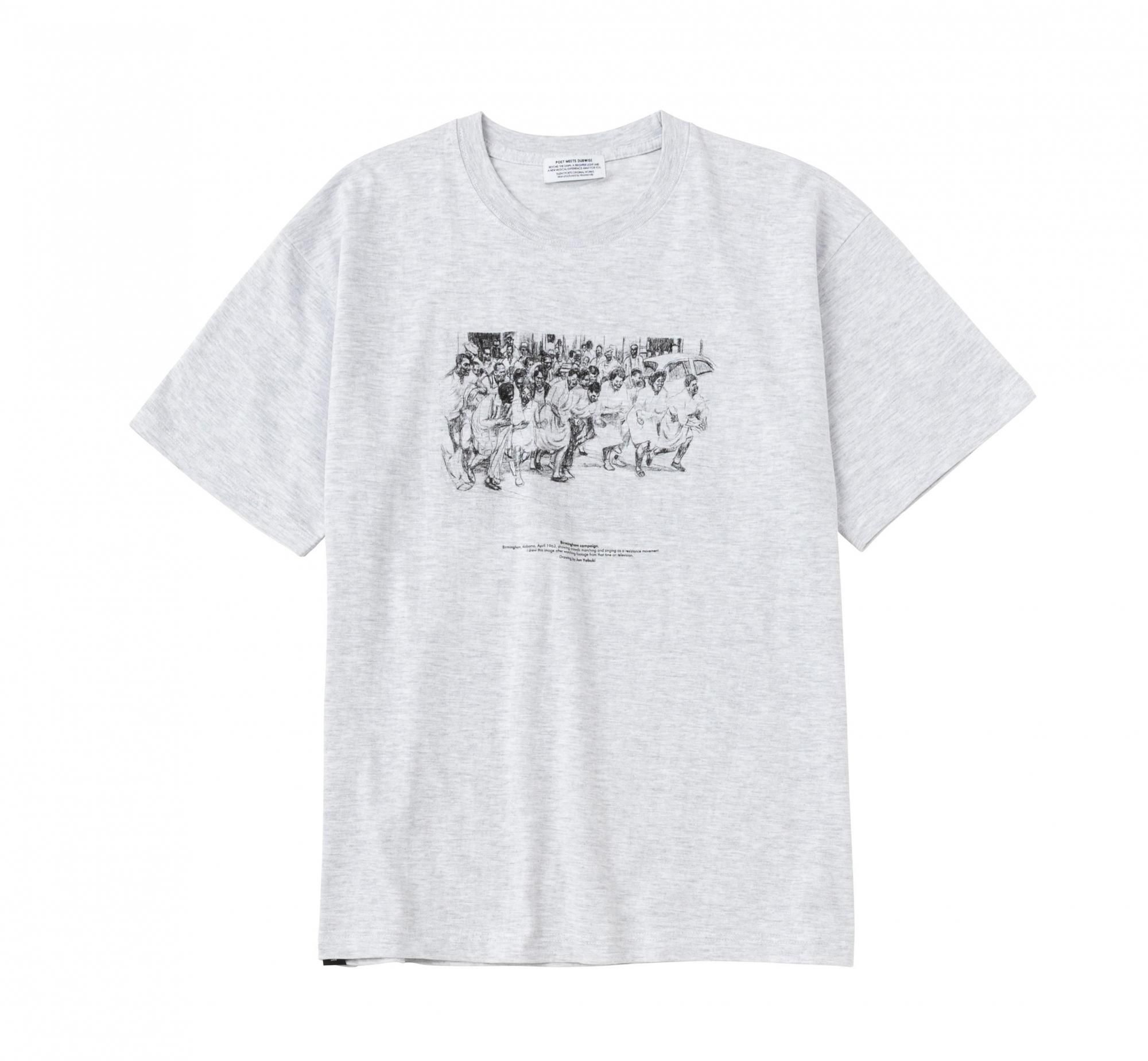 イラストレーターの矢吹純氏とのコラボレーション。フロントにプリントされたイラストは、1963年4月のアメリカ、アラバマ州バーミングハム、抵抗運動として歌いながら行進する群集の様子を描いたもの。コーマ糸を使用した肌触りの良さとほどよくタフな肉感を追求したプレミアムコットン・ロングスリーブ・Tシャツ。