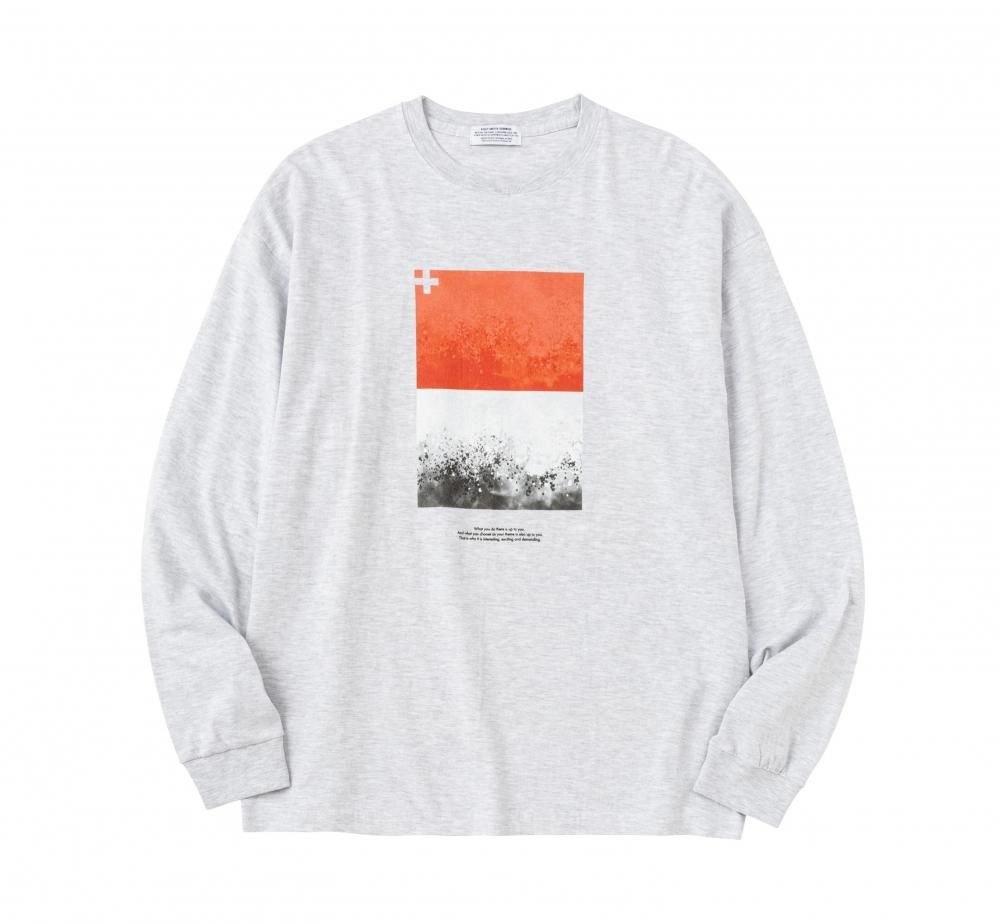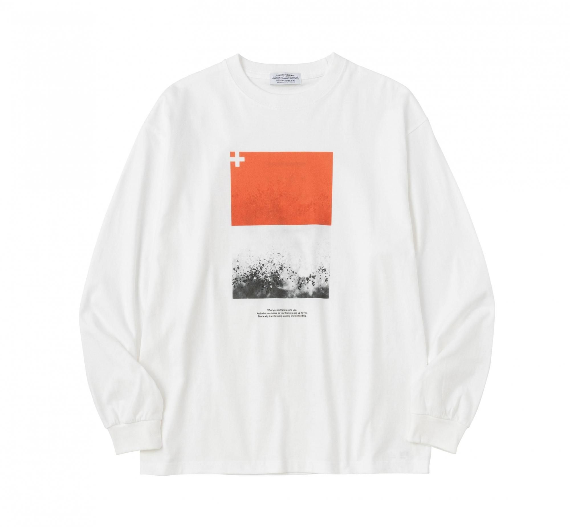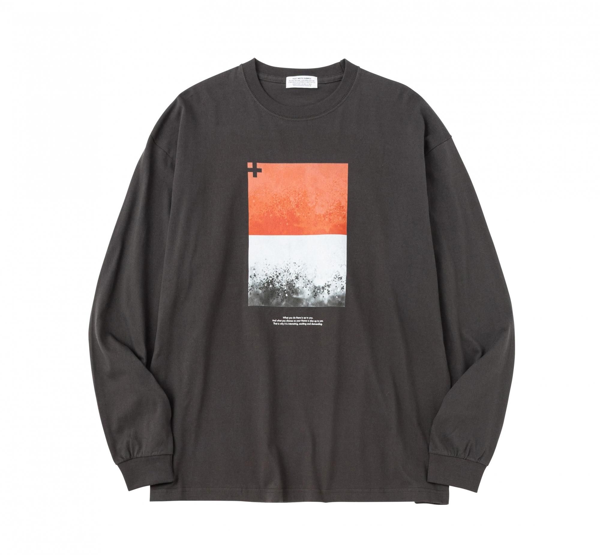 アブストラクトなテクスチャーを使ったデザインをプリント。コーマ糸を使用した肌触りの良さとほどよくタフな肉感を追求したプレミアムコットン・ロングスリーブ・Tシャツ。
