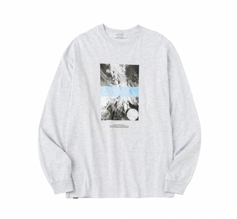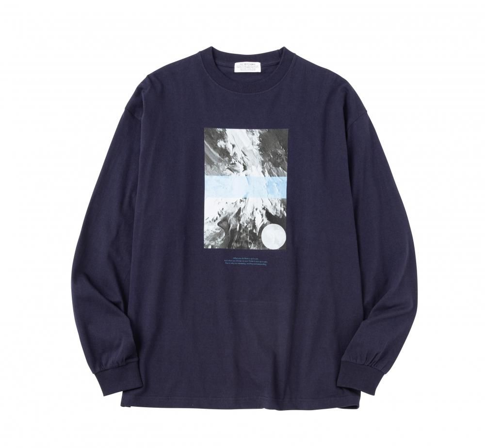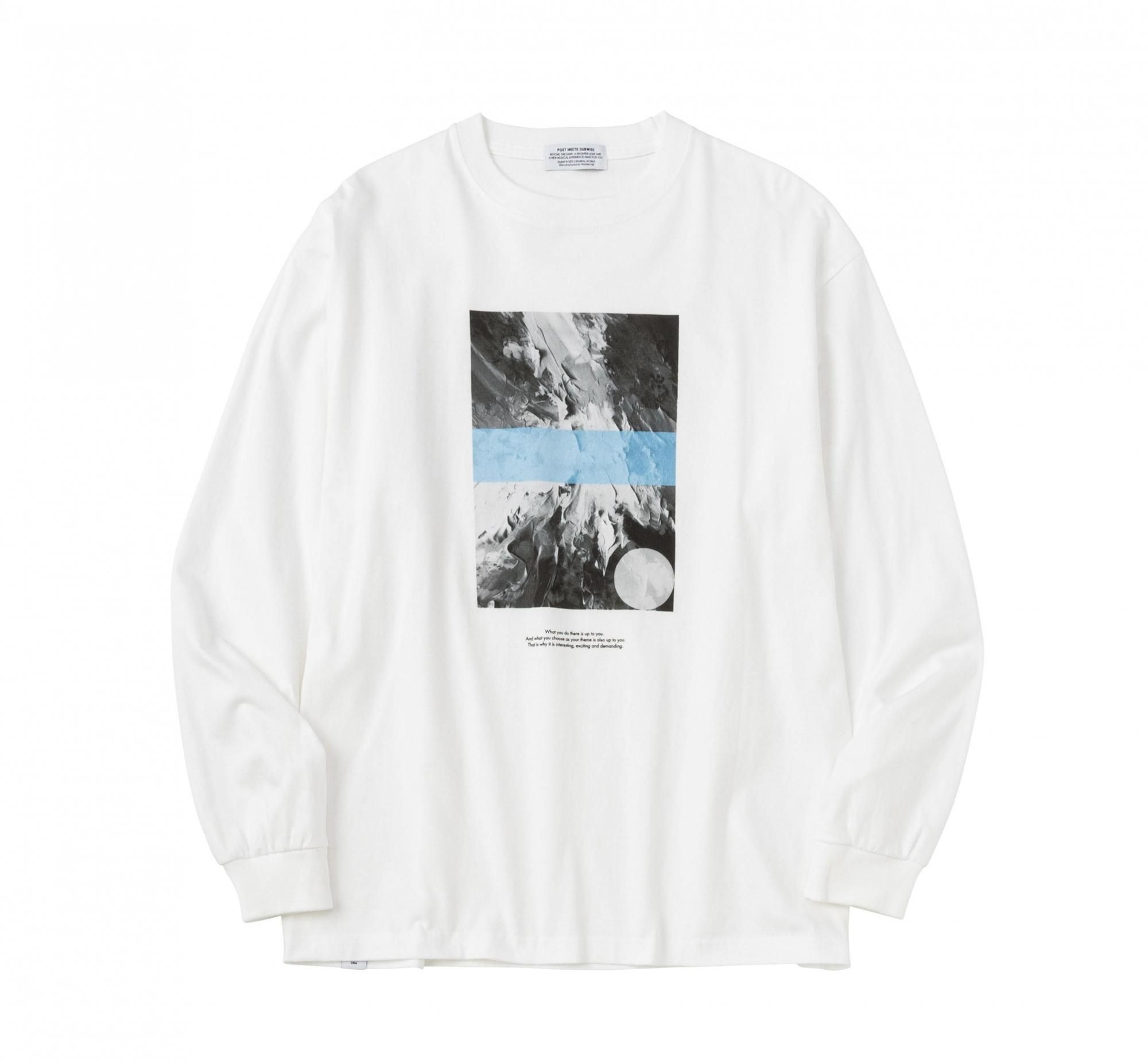 アブストラクトなテクスチャーを使ったデザインをプリント。コーマ糸を使用した肌触りの良さとほどよくタフな肉感を追求したプレミアムコットン・ロングスリーブ・Tシャツ。