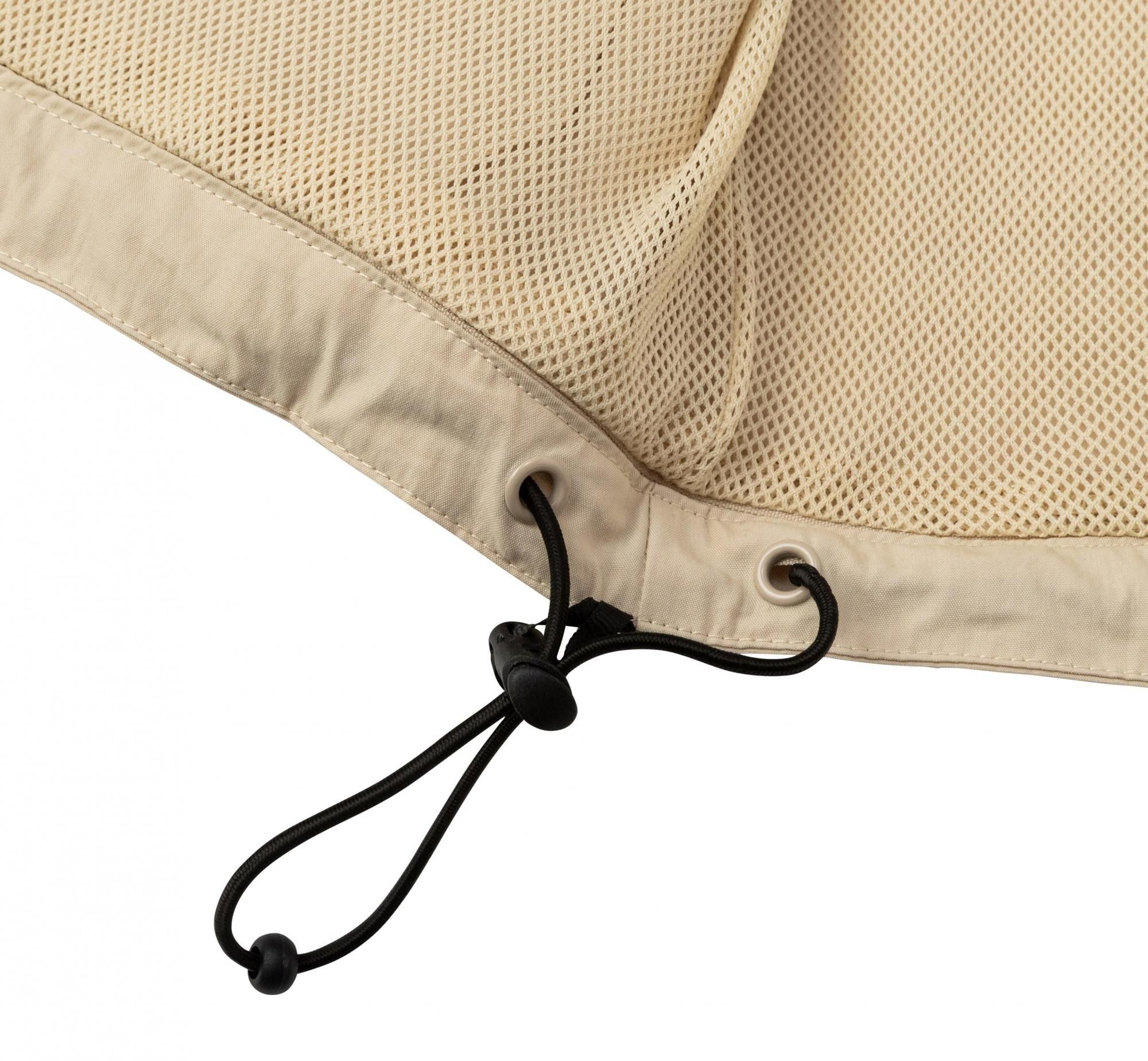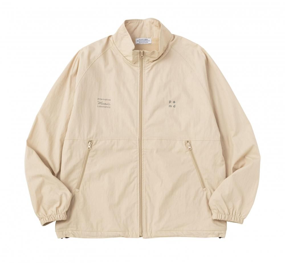 コットンナイロン素材を使用したラグランスリーブトラックジャケット。撥水加工、インナーメッシュ、ポケットジップを装備。