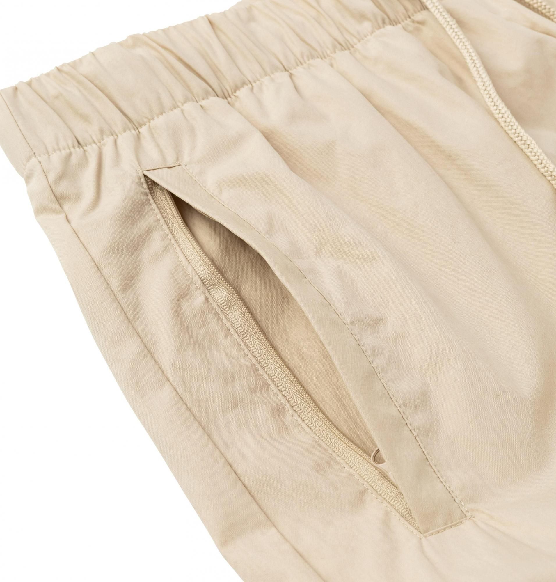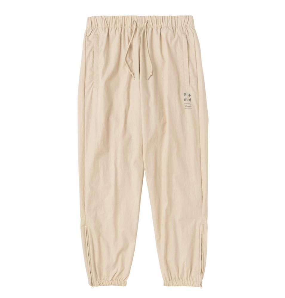 コットンナイロン素材を使用したバーサタイルトラックパンツ。